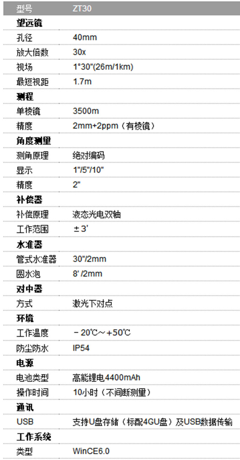 关键词:测量仪器:中纬ZT30 全站仪,测量仪器|测绘仪器|全站仪|RTK|三维激光扫描仪|经纬仪|水准仪